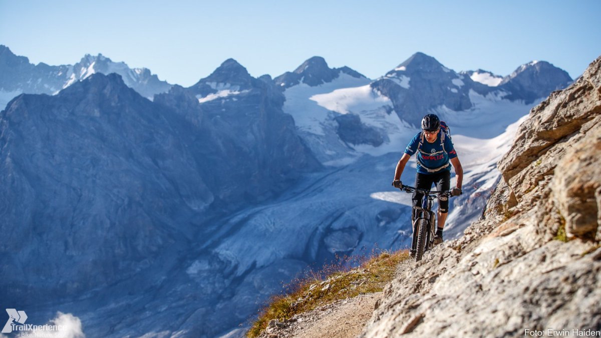 Konditionell (Level 3 - 4): werden wir uns am ersten, zweiten und vierten Tag ein recht erwachsenes Programm haben, der dritte Tag ist ganz bewusst ein wenig kürzer gestaltet. Wir werden keine Rennen fahren, Du solltest aber in der Lage sein, Tagesetappen von 1.000 - 1.500 Höhenmetern schaffen zu können und dabei eine Steigleistung von etwa 400 - 450 Hm / Stunde schaffen (gilt für MTB - EMTB entsprechend mehr). Schiebepassagen sind selten und grundsätzlich kurz - die Ausnahme bildet das faszinierende Val d'Uina, in dem wir den alten direkt in die Felsen gehauenen Alpenvereinsweg hinabschieben werden (befahren im zentralen Abschnitt nicht möglich).